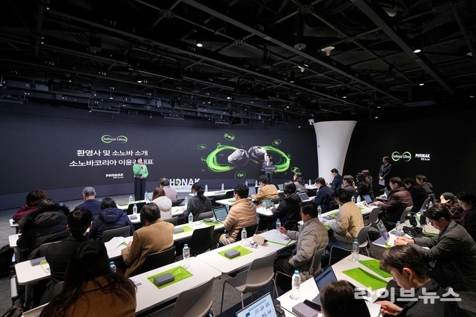 스위스 프리미엄 청각 브랜드 포낙(Phonak)이 서울 동대문디자인플라자(DDP) 디자인랩 2층 서울온 화상 스튜디오에서 ‘Phonak: Leading the AI Experience’를 주제로 기자간담회를 27일 개최했다.