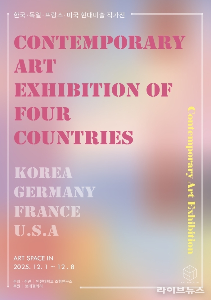 국립인천대학교 ART SPACE IN 갤러리가 오는 12월 1일부터 12월 8일까지 국제 현대미술 교류전 한국·독일·프랑스·미국 현대미술 작가展을 개최한다.