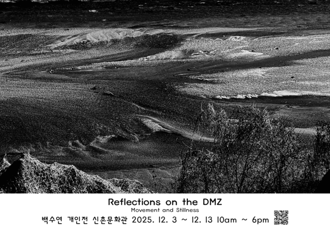 백수연 작가가 열한 번째 개인전 ‘Reflections on the DMZ: Movement and Stillness’를 오는 12월 3일(수)부터 12월 13일(일)까지 서울 서대문구 연세로2마길 14에 위치한 신촌문화관 2층 전시실에서 개최한다. 이번 전시는 강원특별자치도, 강원문화재단, 토지문화재단의 지원으로 진행된다.