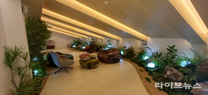 채광 부족으로 생길 수 있는 답답함을 줄이고 공기 정화 효과와 심리적 안정감을 높여 ‘자연 속 그린 오피스’라는 공사의 공간 혁신 의도를 담아냈다.