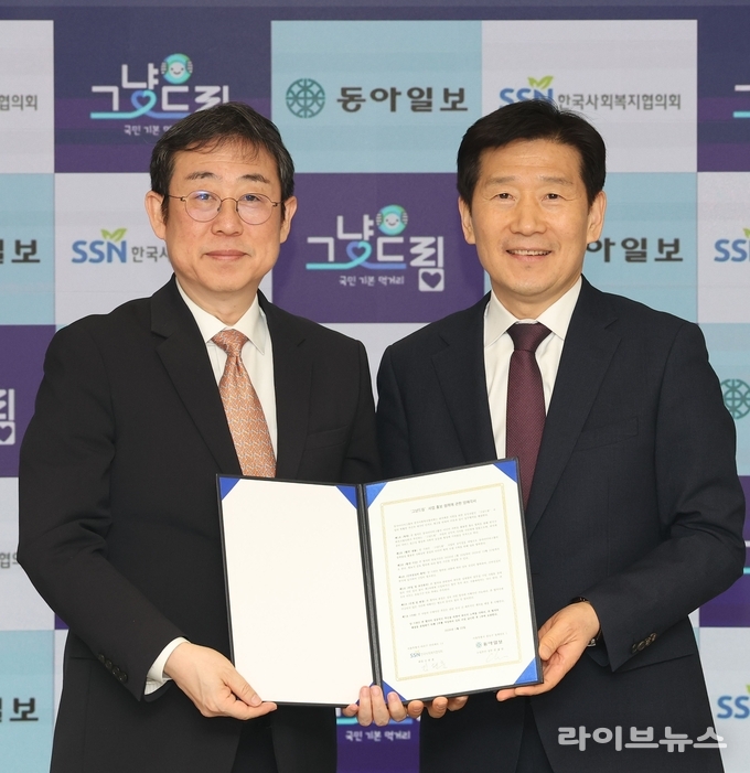 한국사회복지협의회(회장 김현훈)와 동아미디어그룹은 지난 23일 서울 종로구 동아미디어센터에서 ‘그냥드림’ 사업의 전략적 홍보를 위한 업무협약(MOU)을 체결했다.