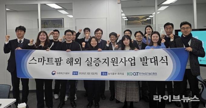 한국농업기술진흥원(원장 안호근)과 농림축산식품부(장관 송미령)는 5일 ‘2026년 스마트팜 해외 실증지원사업’ 선정기업 발대식을 열고, 선정기업과 사업 수행 협약을 체결했다. 발대식에는 농식품부 농산업수출진흥과 서정호 과장, 농진원 관계자, 선정기업 대표 등 약 20명이 참석했다.
