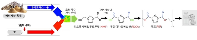 이번 기술은 목질계 자원을 초임계수로 처리해 얻은 HMF를 바이오플라스틱 원료인 FDCA로 전환하는 공정이다. 연구팀은 수율과 효율을 높이기 위해 빛과 전기를 동시에 활용하는 광전기화학 촉매를 적용했다.