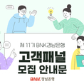 BNK경남은행이 금융상품 개발과 서비스 개선을 위해 고객의 생생한 목소리를 전달할 ‘제11기 BNK경남은행 고객패널’을 모집한다. 이번 고객패널은 오는 3월부터 10월까지 약 8개월간 활동하며, 온·오프라인을 통해 BNK경남은행의 금융 상품과 서비스에 대한 다양한 의견을 제시하고 구체적인 개선안을 요구하는 메신저 역할을 수행하게 된다. 모집 인원은 15명 내외로, BNK경남은행의 서비스에 관심이 많고 경남·울산·부산 지역에 거주하는 고객이라면 누구나 지원 가능하다. 선발된 패널은 정기적인 발대식과 해단식, 각종 회의에 참석해야 하므로 원활한 활동을 위해 기본적인 PC 조작 능력과 개인 SNS 활용 역량이 요구된다. 지원을 희망하는 고객은 오는 2월 6일까지 BNK경남은행 홈페이지 새소식 코너에서 지원서를 다운로드해 작성한 후 이메일로 접수하면 된다. 활동에 참여하는 고객패널에게는 매월 소정의 활동비(제세공과금 별도 부담)가 지급되며, 활동 종료 후 우수 고객패널로 선정될 경우 별도의 인센티브 혜택도 제공된다. 금융소비자보호 담당임원 김경옥 상무는 “금융소비자보호의 시작은 소비자의 관점에서 행동하고 생각하는 것이다. BNK경남은행은 소비자의 의견 수렴과 제도
