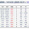 언론 통합 플랫폼이자 인터넷신문사 제보팀장을 운영 중인 더에이아이미디어는 12월 31일 NZSI INDEX 기반 시황 보고서를 발표했다. [편집자주] NZSI INDEX는 왜곡된 시장 정보에서 벗어나, 개인 투자자를 위한 공정하고 실질적인 투자 기준을 제시합니다. NZSI INDEX에는 미래를 설계할 수 있는 자본시장의 가능성이 담겨 있습니다. ★ 지수변경 : 1,000을 기준으로 종목 기여도 동일 반영 ★ 기 준 가 : 2024. 12. 20 / 1차 개편 : 2025. 04. 01 ★ 평가기준 : 20개 종목 X 5개 항목 (건전성, 안전성, 성장성, 위험도, 기대값) X 10등급 (A3 ~ D) 2025년 거래 마지막 날인 12월 31일, 국내 증시는 연말 휴장으로 문을 열지 않았다. 연초부터 이어진 가파른 상승 흐름 속에서 시장은 한 해를 마무리하며 잠시 숨을 고르는 모습이었다. 해외 증시는 뚜렷한 방향성 없이 약세 흐름을 이어갔다. 미국 다우존스 산업평균지수는 0.63% 하락한 48,063.29포인트로 마감했고, 나스닥 종합지수도 0.76% 내린 23,241.99포인트를 기록했다. 이날 NZSI INDEX는 0.65% 하락한 1,414.53포인트로
