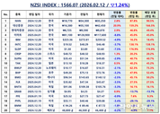 언론 통합 플랫폼이자 인터넷신문사 제보팀장을 운영 중인 더에이아이미디어는 2월 12일 NZSI INDEX 기반 시황 보고서를 발표했다. [편집자주] NZSI INDEX는 왜곡된 시장 정보에서 벗어나, 개인 투자자를 위한 공정하고 실질적인 투자 기준을 제시합니다. NZSI INDEX에는 미래를 설계할 수 있는 자본시장의 가능성이 담겨 있습니다. ★ 지수변경 : 1,000을 기준으로 종목 기여도 동일 반영 ★ 기 준 가 : 2024. 12. 20 / 1차 개편 : 2025. 04. 01 ★ 평가기준 : 20개 종목 X 5개 항목 (건전성, 안전성, 성장성, 위험도, 기대값) X 10등급 (A3 ~ D) 2026년 2월 12일 국내 증시는 강한 상승 흐름을 이어갔다. 코스피 지수는 전 거래일 대비 3.13% 상승한 5,522.27포인트, 코스닥 지수는 1.00% 오른 1,125.99포인트로 마감했다. 거래대금은 코스피 27조 6천억 원, 코스닥 14조 3천억 원으로 전일 대비 확대된 모습을 보였고 시가총액은 코스피 4,542조 6천억 원, 코스닥 606조 6천억 원을 기록하며 다시 한 번 최고치를 경신했다. 지수 상승 속도는 완만해지고 있으나 시가총액은 확대되는
