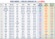 언론 통합 플랫폼이자 인터넷신문사 제보팀장을 운영 중인 더에이아이미디어는 2월 17일 NZSI INDEX 기반 시황 보고서를 발표했다. [편집자주] NZSI INDEX는 왜곡된 시장 정보에서 벗어나, 개인 투자자를 위한 공정하고 실질적인 투자 기준을 제시합니다. NZSI INDEX에는 미래를 설계할 수 있는 자본시장의 가능성이 담겨 있습니다. ★ 지수변경 : 1,000을 기준으로 종목 기여도 동일 반영 ★ 기 준 가 : 2024. 12. 20 / 1차 개편 : 2025. 04. 01 ★ 평가기준 : 20개 종목 X 5개 항목 (건전성, 안전성, 성장성, 위험도, 기대값) X 10등급 (A3 ~ D) 2026년 2월 17일 국내 증시는 설 연휴로 휴장하였다. 국내 시장이 멈춰 있는 사이 글로벌 시장은 제한적인 상승 흐름을 이어가며 유동성 중심의 장세가 유지되고 있음을 보여줬다. 전일 미국 증시는 워싱턴 데이 이후 재개된 거래에서 혼조세를 나타냈다. 다우존스 산업평균지수는 0.07% 상승한 49,533.19포인트, 나스닥 종합지수는 0.14% 오른 22,578.38포인트로 마감했다. 상승 폭은 제한적이지만 시장의 방향성은 여전히 상방을 유지하고 있다. NZSI