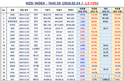 언론 통합 플랫폼이자 인터넷신문사 제보팀장을 운영 중인 더에이아이미디어는 2월 24일 NZSI INDEX 기반 시황 보고서를 발표했다. [편집자주] NZSI INDEX는 왜곡된 시장 정보에서 벗어나, 개인 투자자를 위한 공정하고 실질적인 투자 기준을 제시합니다. NZSI INDEX에는 미래를 설계할 수 있는 자본시장의 가능성이 담겨 있습니다. ★ 지수변경 : 1,000을 기준으로 종목 기여도 동일 반영 ★ 기 준 가 : 2024. 12. 20 / 1차 개편 : 2025. 04. 01 ★ 평가기준 : 20개 종목 X 5개 항목 (건전성, 안전성, 성장성, 위험도, 기대값) X 10등급 (A3 ~ D) 2026년 2월 24일 국내 증시는 상승 흐름을 이어갔다. 코스피 지수는 전 거래일 대비 2.11% 상승한 5,969.64포인트를 기록하며 6,000선에 근접했고, 코스닥 지수 역시 1.13% 오른 1,165.00포인트로 마감했다. 거래대금은 코스피 약 34조 602억 원, 코스닥 약 13조 1,004억 원으로 집계되며 이전 대비 확대된 흐름을 보였다. 시가총액 또한 코스피 4,904조 3천억 원, 코스닥 627조 9천억 원을 기록하며 사상 최고치를 다시 경신했다