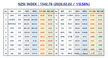 언론 통합 플랫폼이자 인터넷신문사 제보팀장을 운영 중인 더에이아이미디어는 2월 2일 NZSI INDEX 기반 시황 보고서를 발표했다. [편집자주] NZSI INDEX는 왜곡된 시장 정보에서 벗어나, 개인 투자자를 위한 공정하고 실질적인 투자 기준을 제시합니다. NZSI INDEX에는 미래를 설계할 수 있는 자본시장의 가능성이 담겨 있습니다. ★ 지수변경 : 1,000을 기준으로 종목 기여도 동일 반영 ★ 기 준 가 : 2024. 12. 20 / 1차 개편 : 2025. 04. 01 ★ 평가기준 : 20개 종목 X 5개 항목 (건전성, 안전성, 성장성, 위험도, 기대값) X 10등급 (A3 ~ D) 2026년 2월 2일 국내 증시는 큰 폭의 하락 흐름을 보였다. 코스피 지수는 전 거래일 대비 5.26% 하락한 4,949.67포인트, 코스닥 지수는 4.44% 내린 1,098.36포인트로 마감했다. 거래대금은 코스피 약 35조 5천억 원, 코스닥 약 22조 7천억 원으로 집계됐으며, 시가총액은 코스피 4,073조 4천억 원, 코스닥 591조 3천억 원으로 국내 주식시장 전체 규모는 사상 최고치 흐름을 이어가다 하락 전환으로 마무리됐다. 지수 급락에도 불구하고 자금