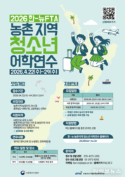 농림수산식품교육문화정보원(원장 윤동진, 이하 농정원)은 4월 8일부터 4월 29일까지 ‘2026년 한-뉴 FTA 농업협력사업 농촌지역 청소년 어학연수’ 참가자를 모집한다. 한-뉴 자유무역협정(FTA, ’15.12. 체결)에 따라 한국과 뉴질랜드가 협약을 맺고, 농업인 피해 보전을 위해 농업인 자녀를 대상으로 어학 능력 향상과 글로벌 의식 함양을 지원하는 사업이다. 지원 대상은 농촌지역에 주소를 두고 공고일 기준 1년 이상 거주 중인 농업인(학부모 또는 보호자) 자녀로, 중학교 2·3학년과 고등학교 1·2학년 재학생이다. 학교장의 추천을 받아야 한다. 최종 선발된 70명은 영어 환경에서 2주간 국내 집체교육과 1주간 뉴질랜드 문화탐방을 포함한 총 3주간의 어학연수를 받는다. 교육비는 전액 국비로 지원된다. 모집 공고와 신청 서류는 농정원 홈페이지 공지사항에서 확인할 수 있다. 참가 신청은 4월 22일부터 29일 18시까지 온라인 홈페이지에서 접수하며, 주민등록등본 등 필수 제출서류를 함께 제출해야 한다. 참가자 선발은 서류 심사와 추첨의 2단계 전형으로 진행된다. 접수 기간 내 제출된 서류를 검토해 지원 자격이 적합한 지원자에 한해 추첨을 실시한다. 사회적 약