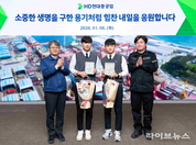 HD현대중공업은 2026년 1월 6일 80대 어르신의 생명을 구한 두 고등학생을 초청해 표창장 수여와 장학금을 전달했다. 이날 행사는 HD현대중공업 직원 자녀 윤재준 군(대송고 2학년)과 친구 문현서 군(화암고 2학년)이 의식을 잃은 80대 할아버지의 생명을 구한 선행을 기리고 이들의 용기를 널리 알리려고 마련했다. 윤재준 군과 문현서 군은 2025년 1월 28일 식당에서 아르바이트 중 갑자기 쓰러진 할아버지를 발견했다. 주변 어른들이 당황하는 상황에서도 두 학생은 침착하게 할아버지를 눕히고 기도를 확보했으며 약 2분간 심폐소생술로 할아버지는 의식을 되찾았다. 이후 도착한 119 구급대에 의해 안전하게 병원으로 이송됐다. 이 감동적인 순간은 목격자가 SNS에 올리면서 빠르게 알려졌고 지역사회에 큰 울림을 주었다. 이들의 선행은 지역사회에 큰 감동을 전했으며 특히 HD현대중공업이 강조하는 ‘모두를 위한 안전’의 가치와 맞닿아 있는 사례로 주목 받았다. ▴ HD현대중공업이 시민의 생명을 구한 직원 자녀 등 학생 2명을 회사로 초청해 표창장과 장학금을 전달했다. 왼쪽부터 HD현대중공업 금석호 사장, 문현서 군, 윤재준 군, HD현대중공업 윤형민 기사 금석호 HD현