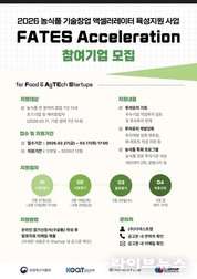 스타트업 액셀러레이터 더넥스트랩과 스타트업리서치가 농식품 유망 창업 기업을 대상으로 운영하는 ‘FATES Acceleration(페이츠 액셀러레이션)’ 프로그램의 참가기업을 모집한다고 밝혔다. 지난해에 이어 농림축산식품부가 주최하고 한국농업기술진흥원이 주관하는 ‘2026 농식품 기술창업 액셀러레이터 육성지원’의 운영 액셀러레이터로 선정된 더넥스트랩과 스타트업리서치는 3년 연속 본 프로그램을 운영하며, 투자유치를 통한 Scale-up을 희망하는 농식품 전 분야의 업력 7년 이내 기술 융•복합 (예비)창업자를 모집한다. 선발 규모는 10개사 내외로, 프로그램 참가기업으로 선정되면 더넥스트랩과 스타트업리서치가 직접투자를 검토할 예정이라고 밝혔다. 이 외에 ▲투자유치 전략 등 기업 맞춤형 컨설팅 ▲IR 자료 고도화 및 추가 IR 레포트 제작 지원 등 다양한 혜택을 제공하며, 특히 농식품 분야 전문 투자기관을 대상으로 2회의 데모데이를 개최하는 등 특화 프로그램을 통해 참가기업의 성장을 지원할 예정이다. 관계자는 “프로그램 참가를 희망하는 초기기업 및 예비창업자는 3월 17일(화) 17시까지 참가 신청서를 작성한 후 발표자료를 참가 신청서에 안내된 메일로 제출하면 된