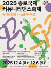 서울 종로가 겨울 초입, 춤으로 뜨거워진다. 국내외 커뮤니티댄스 예술가와 시민들이 함께 호흡하는 ‘2025 종로국제커뮤니티댄스축제’가 오는 12월 4일부터 6일까지 종로 일대에서 펼쳐지며, 예술이 일상과 만나는 특별한 현장을 선보인다. 올해 축제의 키워드는 ‘똘레랑스(Tolerance)’. 서로의 다름을 존중하고, 공동체 속에서 몸짓을 통해 소통하는 커뮤니티댄스의 본질을 그대로 담아낸다. 축제의 문은 12월 4일(목) 서울아트센터 도암홀에서 열리는 개막식과 ‘100인 시민의춤’ 공연이 연다. 안무가 최보결이 이끄는 이 무대는 다양한 연령과 배경의 시민 100명이 직접 참여해 ‘춤으로 만나는 공동체’를 구현한다. 개막식 축하무대는 전통춤 연구자 김혜란의 ‘구음검무’가 장식하며, 라이브 국악 연주자 정정희(체부동국악실내악단 단장)의 대금 연주가 공연의 깊이를 더한다. 이어 종로 시니어 마마댄스, 종로 남성시민춤단 ‘만풍댄스’, 최보결의 춤의학교 무용단 ‘곡신불사’ 등 종로 기반 커뮤니티댄스 팀들이 무대를 채운다. 관객이 참여하는 마더스 프레젠트와 메릴리 하덴버그의 써클댄스도 관람객들의 호응이 기대되는 프로그램이다. 둘째 날인 12월 5일(금)에는 서머셋 팰리스