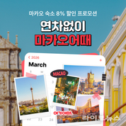 대한민국 대표 종합 여행ㆍ여가 플랫폼 여기어때(대표 정명훈)가 마카오편과 연계한 숙소 할인 프로모션을 진행중이다. 이번 프로모션은 ‘연차없이 어떡행’ 마카오편에서 등장한 마카오 숙소를 중심으로 기획했다. 콘텐츠 속 여행 경험을 실제 예약 혜택으로 연결해 이용자와의 접점을 확대하는 방식이다. 여기어때는 마카오에 위치한 숙소를 대상으로 8% 할인 쿠폰을 제공한다. 할인 한도는 최대 5만원이다. 쿠폰은 1인 1매 발급 가능하다. 쿠폰 발급은 이달 19일까지로, 해당 기간 내 다운로드 후 예약 시 적용할 수 있다. 마카오는 짧은 비행시간과 다양한 호텔, 엔터테인먼트 시설로 주말 해외여행 수요가 꾸준한 여행지다. 세나도 광장, 성바울 성당 유적 등 동서양 문화를 공존하는 매력을 함께 즐길 수 있다. 강희경 여기어때 제휴마케팅전략팀장은 “콘텐츠에서 소개된 여행지를 실제 할인 혜택으로 연결해 고객 경험을 확장하고자 했다”며 “연차 사용이 어려운 직장인도 부담 없이 해외여행을 계획할 수 있도록 관련 프로모션을 지속 확대하겠다”고 말했다.