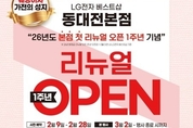 LG전자 베스트샵 동대전본점이 리뉴얼 오픈 1주년을 맞아 대대적인 고객 감사 프로모션을 진행한다고 전했다. 사전 예약은 2월 9일부터 2월 28일까지 운영되며, 본 행사는 3월 2일부터 행사 종료 시까지 이어진다. 이번 1주년 행사는 프리미엄 가전을 중심으로 전 품목에 걸쳐 혜택을 강화한 것이 핵심이다. TV, 냉장고, 세탁기, 건조기, 에어컨, 청소기 등 주요 인기 제품군을 포함해 제품별 특별 조건이 적용되며, 2개 이상 동시 구매 시 추가 할인 혜택도 제공된다. 관계자는 “웨딩•혼수 고객을 위한 맞춤 상담이 제공된다. 웨딩 전문 매니저가 배정돼 예산, 주거 형태, 라이프스타일을 반영한 가전 패키지를 제안한다. 냉장고•세탁기•건조기•스타일러 등 혼수 필수 가전을 합리적인 조합으로 구성해 초기 비용 부담을 줄이고, 공간 효율까지 고려한 설계를 지원한다”고 설명했다. 이어 “입주 및 이사 고객을 위한 전문 상담 프로그램도 함께 운영된다. 신규 아파트 입주 예정 고객과 이사 수요 고객을 대상으로, 실제 공간 구조에 맞춘 제품 추천과 배치 컨설팅이 진행된다”고 전했다. 관계자는 “이와 함께 LG전자 구독 서비스 상담도 가능하다. 일정 기간 무상 A/S(고객 과실