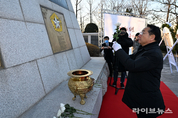 유정복 인천시장이 병오년(丙午年) 새해 첫 공식 일정으로 현충 참배에 나서며 시정 운영의 출발을 알렸다. 유 시장은 2일 인천수봉공원 내 6·25참전 인천지구 전적비를 찾아 순국선열과 호국영령의 넋을 기리며 새해의 각오를 다졌다. 이번 참배는 나라를 위해 헌신한 이들의 희생을 되새기고, 시민행복 도시 인천으로의 도약 의지를 다짐하기 위해 마련됐다. 이날 행사에는 유정복 시장을 비롯해 정해권 인천시의회 의장, 도성훈 인천시교육감, 인천보훈지청장, 보훈단체장 등 주요 인사 100여 명이 참석했다. 참석자들은 국민의례를 시작으로 헌화와 분향을 진행하며 호국영령에 대한 존경과 감사의 뜻을 표했다. 엄숙한 분위기 속에서 진행된 참배는 새해 인천시정의 방향을 상징적으로 보여주는 자리로, 희생과 헌신의 가치를 시정의 출발점으로 삼겠다는 의미를 담았다. 유정복 시장은 “대한민국의 자유와 평화를 지켜온 순국선열과 호국영령의 숭고한 희생을 기억하는 것은 오늘을 살아가는 우리의 책임”이라며 “이분들의 뜻을 이어받아 인천이 시민 모두가 안심하고 행복하게 살아갈 수 있는 도시로 나아가도록 최선을 다하겠다”고 말했다. 이어 “병오년 새해에는 시민의 일상이 실질적으로 변화하는 시민행복