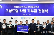 민생경제연구소가 취약계층 지원을 위해 ‘그냥드림’ 사업에 1억 원을 기부하며 민관 협력 기반 복지 확대에 힘을 보탰다. 한국사회복지협의회 전국푸드뱅크는 1일 서울 마포구 협의회 회의실에서 ‘먹거리 기본보장 그냥드림 사업’ 지원을 위한 기부금 전달식을 개최했다고 밝혔다. 이날 행사에는 박홍근 기획예산처 장관을 비롯해 보건복지부 관계자, 민생경제연구소 및 시민사회 관계자들이 참석했다. 이번 전달식에서 안진걸 민생경제연구소 소장은 복지 사각지대에 놓인 취약계층의 먹거리 기본권 보장을 위해 1억 원을 기탁했다. 해당 기부금은 전국 거점을 통해 위기 가구에 전달될 식료품과 생필품 마련에 활용될 예정이다. 전국푸드뱅크는 현재 전국 68개 시군구에서 129개소의 ‘그냥드림’ 코너를 운영 중이며, 올해 안으로 이를 300개소까지 확대한다는 목표를 세웠다. 이를 통해 보다 촘촘한 복지 지원 체계를 구축한다는 계획이다. 박홍근 장관은 “시민사회단체의 자발적 나눔이 기부문화 확산의 마중물이 될 것”이라며 “민과 관이 함께할 때 사회안전망은 더욱 촘촘하고 따뜻해질 것”이라고 강조했다. 안진걸 소장은 “소외된 이웃들이 먹거리만큼은 걱정하지 않는 환경을 만들기 위해 지속적인 기부를