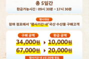 인천시(시장 유정복)는 설 명절을 맞아 국내산 수산물 소비를 촉진하고자 오는 23일부터 27일까지 전통시장 7곳에서 온누리상품권 환급행사를 진행한다고 밝혔다. 이번 행사는 설 명절을 맞아 수산물 체감물가를 안정시키고 국내·외 경기 악화로 위축된 국내 수산물 소비를 활성화하기 위해 최대 규모로 마련됐다. 행사 기간 동안 국내산 수산물을 구매한 소비자는 구매 금액의 30%를 온누리상품권으로 환급받을 수 있다. 1인당 최대 2만원까지 지급되며, 행사는 강화군 강화풍물시장, 중구 인천종합어시장, 남동구 소래포구전통어시장, 서구 정서진중앙시장에서 오는 23일부터 27일까지, 부평구 부평종합시장·부평깡시장·진흥종합시장, 미추홀구 석바위시장, 용현시장에서 오는 23일부터 26일까지 진행된다. 소비자는 행사 기간 중 해당 시장에서 국내산 수산물을 구매한 후 영수증을 환급 부스에 제출하면 된다. 구매 금액에 따라 6만 7000원 이상일 경우 2만원, 3만 4000원에서 6만 7000원 미만일 경우 1만원의 온누리상품권이 지급된다. 단 환급은 행사 참여 점포에서만 가능하며 일반음식점, 제로페이 수산대전 모바일상품권으로 구매한 수산물, 정부 비축 품목, 수입 수산물 등은 제외된