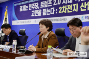 더불어민주당 미래경제성장전략위원회(위원장 이언주 최고위원)과 민주연구원(원장 이한주)이 16일 국회 의원회관에서 트럼프2.0시대 핵심 수출기업의 고민을 듣는다: 2차전지 산업 간담회를 열어 트럼프 2기 정부를 맞는 2차 전지 수출 기업의 고민을 듣고 해법을 모색했다. 이날 간담회에는 신형원 삼성글로벌리서치 상무, 박재범 포스코경영연구원 수석연구원, 조원경 울산과학기술원 교수, 박재정 산업통상자원부 배터리전기전자과 과장 등이 발제자로 나서고 이언주 위원장과 이한주 민주연구원 원장을 비롯해 김원이 국회 산업통상자원중소벤처기업위원회 간사, 김동아 의원, 문대림 의원, 박지혜 의원, 송기헌 의원, 송재봉 의원, 안도걸 의원, 이연희 의원, 이재관 의원, 이재정 의원, 이정문 의원, 허성무 의원, 허영 의원, 홍기원 의원 등 민주당 국회의원, 그리고 간담회 좌장을 맡은 김병욱 전의원 등이 토론에 참여했다. 이날 발제에서는 글로벌 전기차 시장의 성장세 둔화, 중국 2차전지 업체의 시장 점유율 증가, 트럼프 2기 정부 출범에 따른 미국의 IRA 전기차 구매 보조금 폐지 및 관세 인상과 미국내 배터리 소재-셀-팩 완결형 벨류체인 추진 등으로 전기차·2차전지 시장의 불확실성
