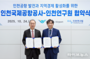 인천연구원과 인천국제공항공사 공항산업기술연구원이 항공산업 발전과 지역경제 활성화를 위해 손을 맞잡았다. 인천연구원(원장 박호군)과 공항산업기술연구원(원장 송치웅)은 10월 24일 오전 11시, 인천국제공항 제2여객터미널 회의실에서 연구협력 협약(MOU)을 체결했다고 밝혔다. 이날 협약식에는 양 기관 관계자 10여 명이 참석했으며, 두 연구원은 앞으로 ▲공항 관련 산업 및 접근 교통 개선 연구 ▲문화·관광 활성화를 위한 정책 개발 ▲연구성과 공유 및 공동 학술행사 개최 ▲연구네트워크 교류와 학술정보 공유 등 다양한 분야에서 협력을 강화하기로 했다. 특히 공항산업기술연구원의 인공지능(AI) 기반 공항 운영 및 수요예측 연구역량과 인천연구원의 지역경제·도시정책 연구 전문성을 결합함으로써, 인천공항의 글로벌 경쟁력 제고와 인천지역 경제 활성화에 실질적인 시너지가 기대된다. 이학재 인천국제공항공사 사장은 “이번 협약은 인천공항과 인천시가 상생할 수 있는 정책 연구개발의 좋은 기회”라며 “앞으로도 공사는 다양한 연구기관들과의 협력을 통해 항공산업 발전과 지역경제 성장에 기여하겠다”고 밝혔다. 박호군 인천연구원장은 “이번 협약은 단순한 연구 교류를 넘어 항공산업 육성과