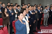 <사진=원건민 기자> 대전환시대 성장포럼 준비위원회는 1일 오전 더불어민주당, 조국신당 소속 국회의원 35명이 참석한 가운데 국회의원회관 제2소회의실에서 대전환시대 성장포럼 창립식을 개최하였다. 더불어민주당 박찬대 원내대표는 창립식 개회사에서 지정학과 경제제질서의 대충돌과 더불어 디지털전환과 에너지전환으로 문명사적 대전환기에 있다고 하며 "현재 필요한 정치는 대전환시대의 성장전략에 유능한 리더십이 필요하다. 따라서 22대 국회는 민생중심의 성장전략을 제시하고 실천하는 개혁국회가 필요하여 창립한다"고 말했다. 이날 총회에서는 류성민 경기대 교수 강연이 있고, 향후 정기세미나, 현장 전문가 초청 세미나, 정책토론회를 열어 정치혁신의 대전환을 논의 할 예정이다.
