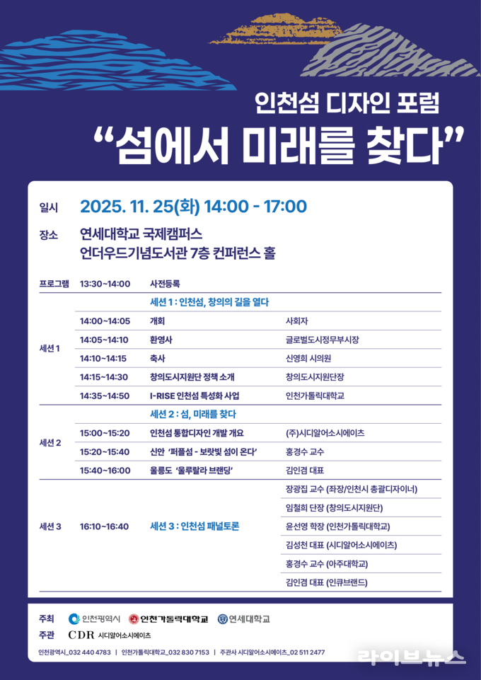 인천시(시장 유정복)는 25일 연세대학교 국제캠퍼스에서 인천섬 디자인 포럼을 개최한다고 밝혔다.