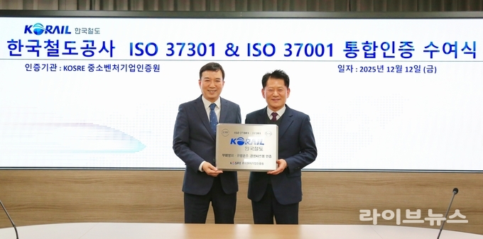 한국철도공사(코레일)가 규범준수 경영시스템(ISO 37301)과 부패방지 경영시스템(ISO 37001) 통합인증을 획득하며 윤리경영 성과를 국제적으로 인정받았다.