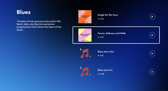 강의에는 기타 잡는 법과 조율법부터 코드 연주, 타브 악보 보는 법, 리프 연주법 등 기초와 실전이 모두 포함됐다. 특히 가상 무대에서 합주하는 듯한 경험을 주는 '잼 모드(Jam Mode)'를 통해 연주의 즐거움을 극대화했다.