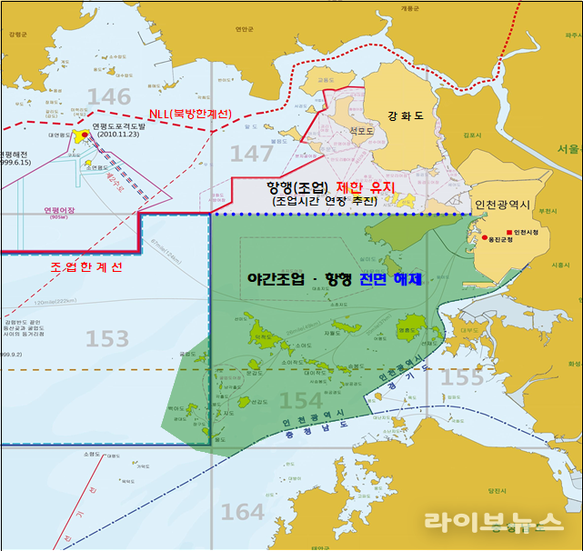 인천시(시장 유정복)는 민·관·군 협업을 통해 인천 연안해역의 야간조업 및 항행 제한을 대폭 완화했다고 밝혔다.