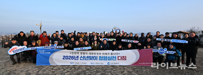 문학산 정상에서는 올해 병오년을 맞아 인천의 도약을 위한 신년 다짐과 함께 청렴 실천 결의가 진행됐다.
