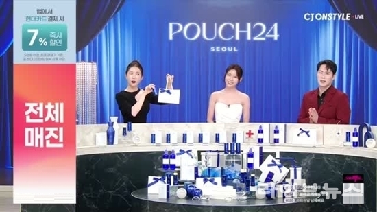 배우 하지원이 론칭한 뷰티 브랜드 파우치24(POUCH24)가 진행한 지난 30일 CJ온스타일 TV 홈쇼핑 생방송에서 준비 수량 전량을 완판했다고 전했다.