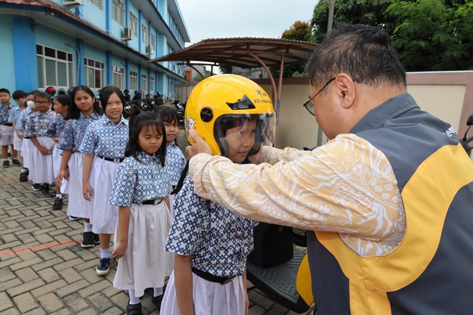 KB손해보험은 지난 3일 인도네시아 자카르타에 위치한 단비초등학교에서 학교 관계자와 학생, 수혜 가정 학부모 등 약 100여 명이 참석한 가운데 전기 이륜차와 안전모 전달식을 개최했다.