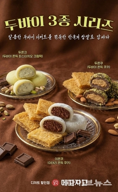 디저트 유통기업 메고지고가 두바이 스타일을 전통 떡으로 해석한 '두바이 3종' 시리즈를 출시했다.