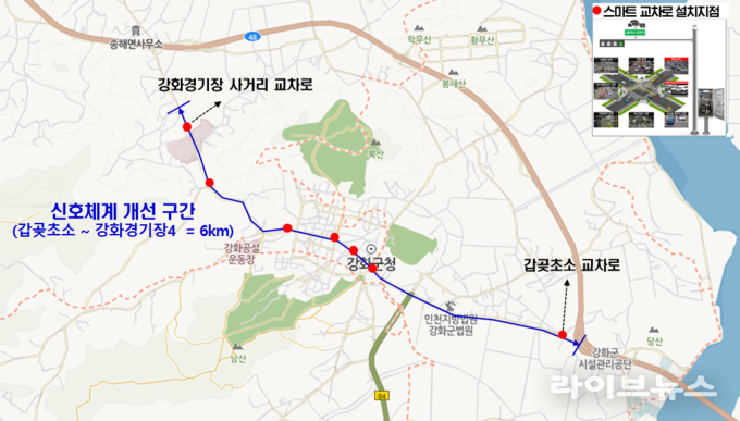 특히 상습 정체 구간으로 꼽혀온 강화 갑곶초소에서 강화경기장사거리까지 약 6km 구간에 인공지능 기반 스마트 교차로 12개소를 구축한 점이 핵심 성과로 꼽힌다.