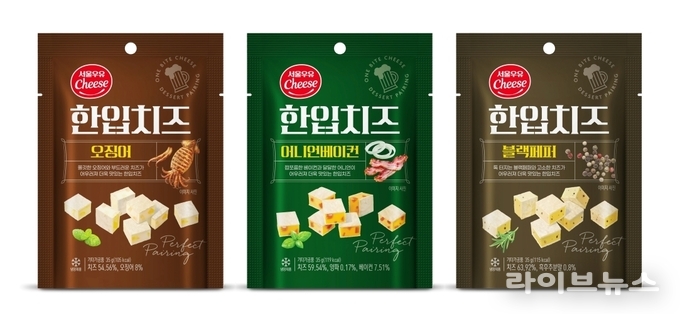 서울우유협동조합(조합장 문진섭)이 홈술 트렌드를 반영해 남녀노소 누구나 호불호 없이 즐길 수 있는 어포 기반의 스낵치즈 신제품 ‘한입치즈 3종’을 출시했다.