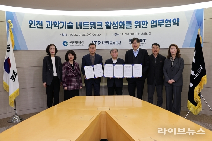 협약에 따라 각 기관은 ▲과학기술 네트워크 활성화를 위한 기반 조성 ▲인천 지역 연구개발(R&D) 경쟁력 강화 ▲과학기술인 간 정례 교류 체계 구축 ▲공동 세미나·포럼 개최 등 다양한 협력 사업을 추진한다.