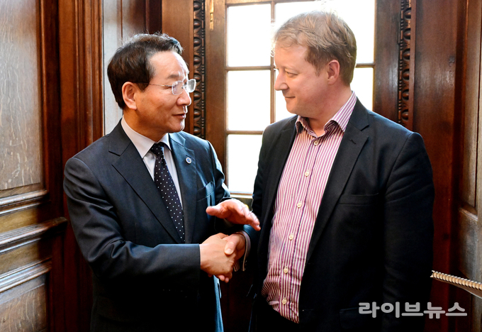 유 시장은 케임브리지 바이오메디컬 캠퍼스를 둘러보고, 폴 브리스토 케임브리지셔·피터버러 광역시장, 앤디 파커 피터하우스 학장과 만나 협력 방안을 논의했다.