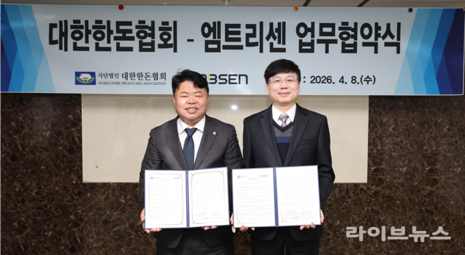 대한한돈협회(회장 이기홍)와 ㈜엠트리센은 지난 8일 제2축산회관에서 인공지능(AI) 기술을 활용한 한돈산업 발전과 농가 생산성 향상을 위한 업무협약(MOU)을 체결했다.