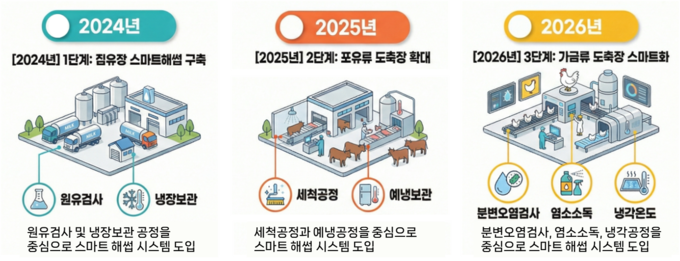 그간 제조·가공 중심이었던 스마트 해썹을 도축장과 집유장까지 확대하면서, 축산물 생산 전 단계에 걸친 통합 관리 체계를 구축하는 것이 핵심이다.
