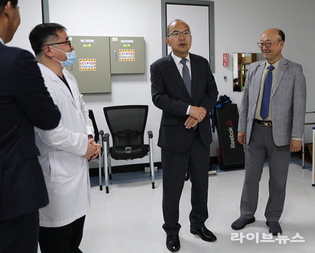 현장에서 윤종진 이사장(사진 오른쪽 두 번째)은 핵심 사업인 ‘지능형(스마트) 의료 인프라 확충’과 ‘고객 맞춤형 진료 특화’ 추진 상황을 집중적으로 살폈다.