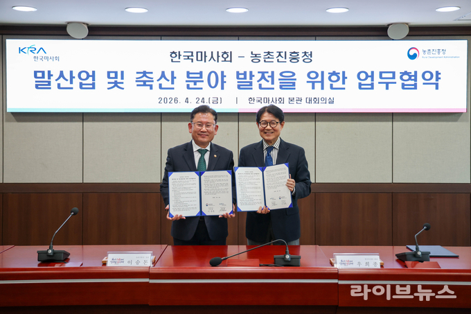 한국마사회(회장 우희종)는 24일 농촌진흥청(청장 이승돈)과 ‘말산업 및 축산분야 발전을 위한 업무협약’을 체결했다고 밝혔다.