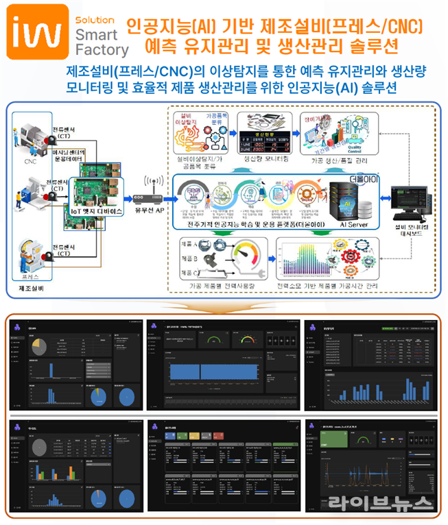 ‘더올아이 플랫폼’을 레벨1 수준으로 고도화를 기반으로 프레스, CNC 설비 등 제조설비의 이상탐지와 생산량 모니터링 및 효율적 제품 가공관리, 그리고 인공지능 모델의 재학습 및 재배포 등 AI 학습모델의 성능 유지보수를 위한 인공지능(AI) 솔루션을 개발하여 스마트팩토리 구축과 현장 친화적인 자율제조 서비스 제공에 주력하고 있다.