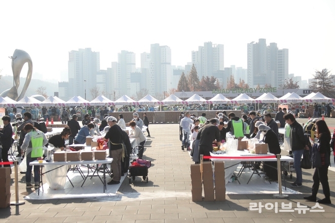 이날 행사에는 개인 참가자 100여 팀과 자생단체·기업체 50여 팀 등 총 1000여 명이 참여해 33톤의 김치를 담갔으며, 완성된 김치는 지역 내 소외계층과 어려운 이웃에게 전달될 예정이다.