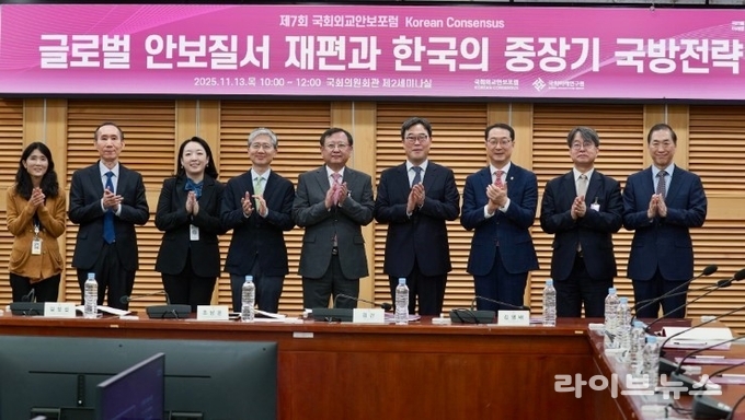 국회미래연구원(원장 김기식)은 11월 13일(목) 오전 10시, 국회의원회관 제2세미나실에서 『제7회 국회외교안보포럼』을 개최했다. 이번 포럼에서는 “글로벌 안보질서 재편과 한국의 중장기 국방전략”을 주제로 발제와 토론이 이뤄졌다.