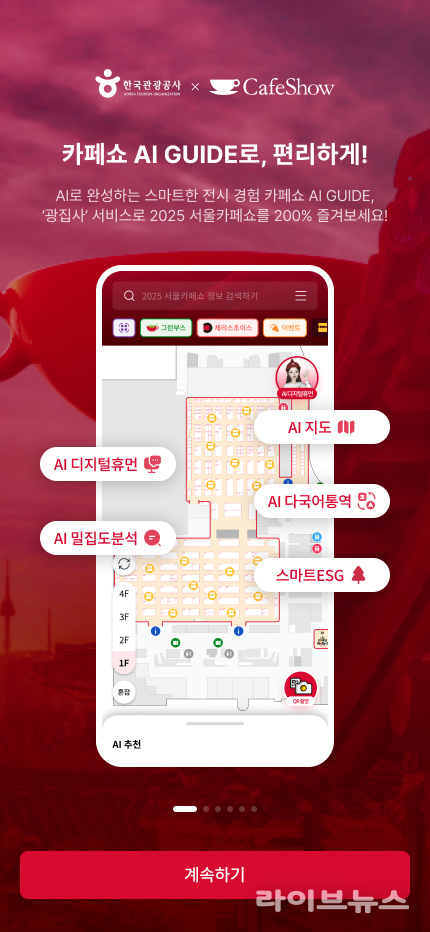한국관광공사(사장직무대행 서영충, 이하 ‘공사’)는 19일, ‘제24회 서울카페쇼(The 24th Seoul Int’l Café Show)’와 ‘월드커피리더스포럼’에서 인공지능(이하 ‘AI’) 기반 전시 안내 서비스인 ‘카페쇼 AI 가이드’를 선보였다. 카페쇼 AI 가이드는 75개국 13만여 명이 참가하는 초대형 전시박람회 현장의 고객 경험을 AI 기술을 활용하여 혁신하고자 추진됐다.