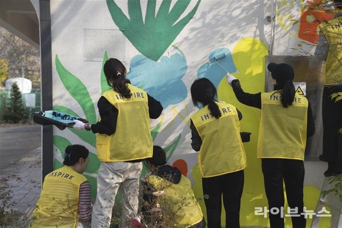 인스파이어 임직원 봉사단은 지난 20일 옹진군 북도면의 사회복지시설 장봉혜림원을 방문해 벽화 그리기, 시설 환경 정리 등 봉사활동을 펼쳤다.