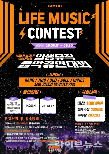 인생뮤직 관계자는 “청주를 중심으로 충청권 전체에서 실용음악을 꿈꾸는 이들이 더 넓은 무대로 나아갈 수 있도록 대회를 설계했다. 지역 기반을 강화하는 동시에 전국 단위 실용음악 성장 플랫폼으로 발전시키겠다”고 말했다.