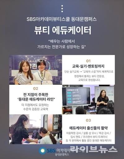 동대문 SBS아카데미뷰티스쿨 관계자는 “미용 입시는 실기 준비 과정이 무엇보다 중요한 만큼, 수험생 개개인의 실력과 진도를 면밀히 분석해 단계별로 지도하는 데 집중하고 있다. 앞으로도 서울권 미용대학 진학을 목표로 하는 학생들이 체계적으로 준비할 수 있도록 입시 교육 프로그램을 지속적으로 보완해 나갈 계획이다”고 전했다.