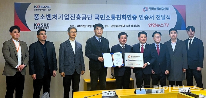 인증서 및 현판 수여식은 3일 연합뉴스TV 대회의실에서 열렸다.
