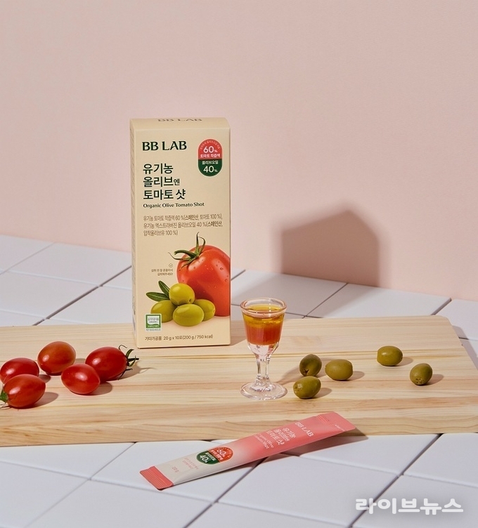 비비랩 ‘유기농 올리브엔 토마토 샷’은 토마토 60%와 올리브오일 40%의 황금 블렌딩을 적용한 비비랩 듀얼샷 시리즈의 대표 제품으로 수십 번의 연구와 테스트 끝에 완성된 최적의 영양 밸런스를 제공한다.